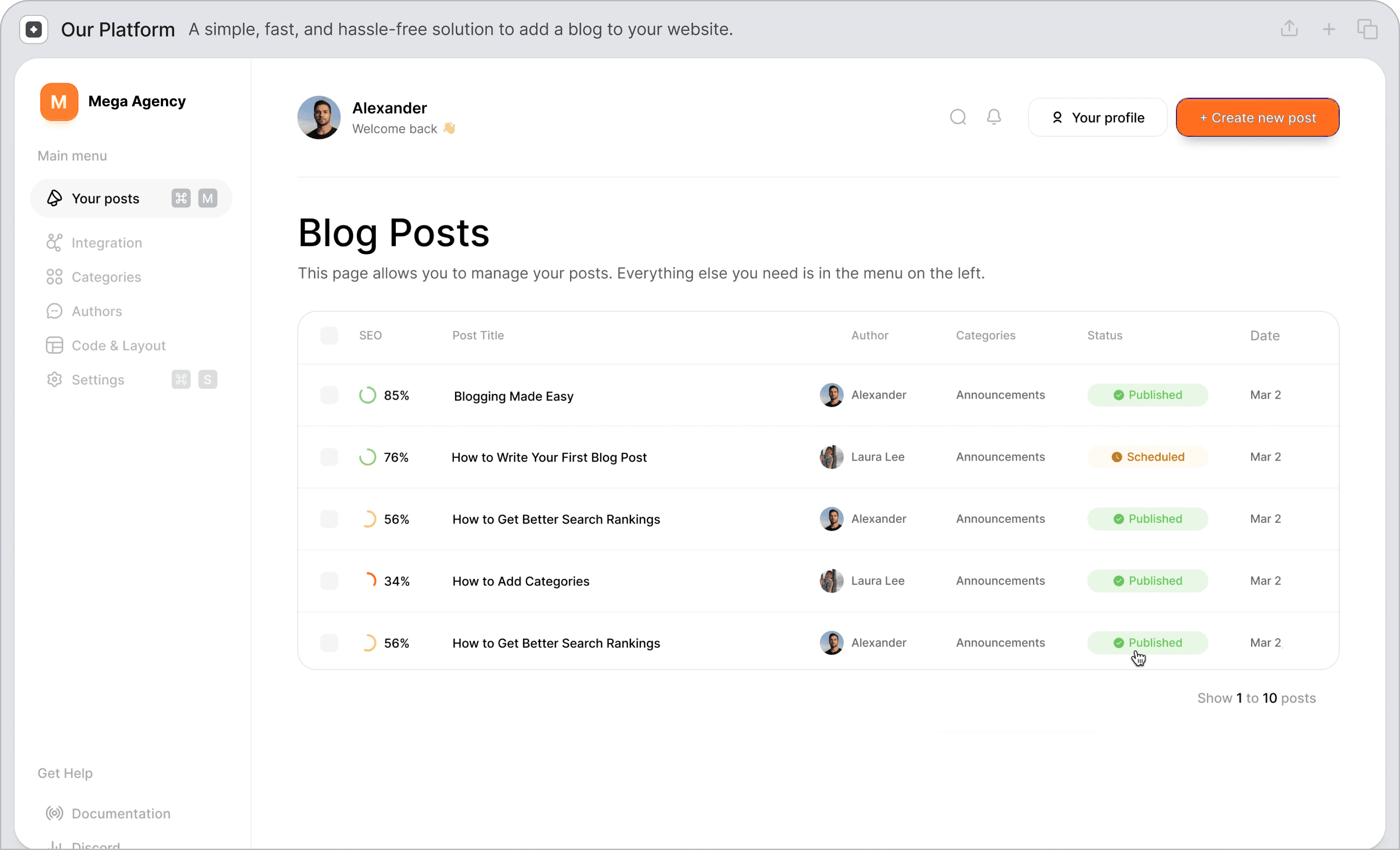 Access all of your clients' DropInBlog accounts from your single Agency Panel. Manage and create from a single interface.