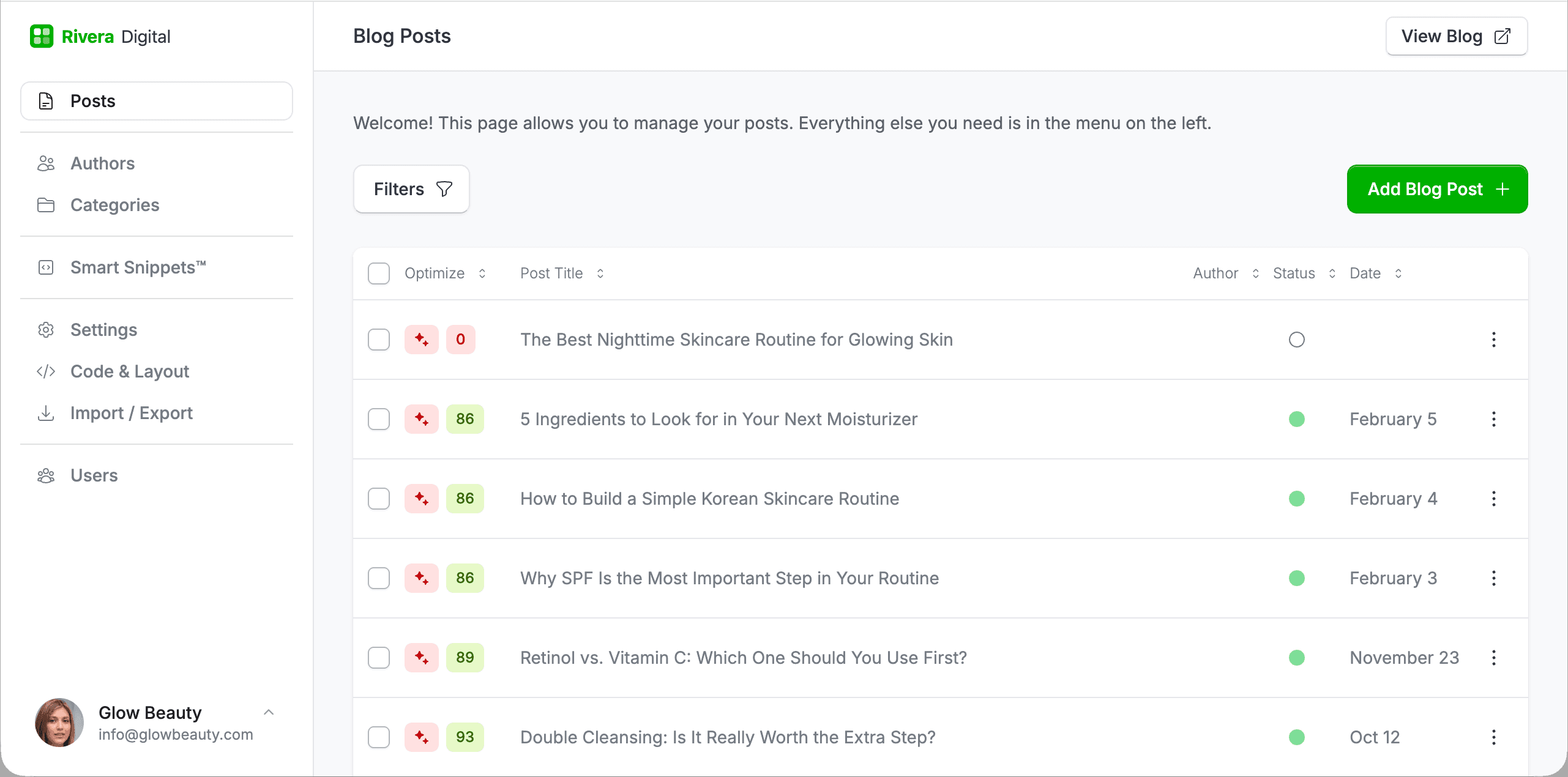 Access all of your clients' DropInBlog accounts from your single Agency Panel. Manage and create from a single interface.