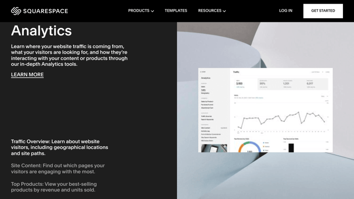 Every platform needs to give you a way to analyze and assess your website and store’s performance. Squarespace has built-in analytics functionality that will help improve your engagement with your site and boost sales. Of course, you can conveniently keep tabs on site analytics via the Squarespace mobile app.