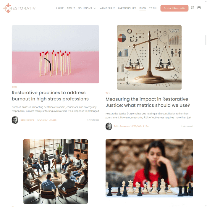 Thought pieces and tech‑enabled restorative justice content from a partnership of academics and technologists.